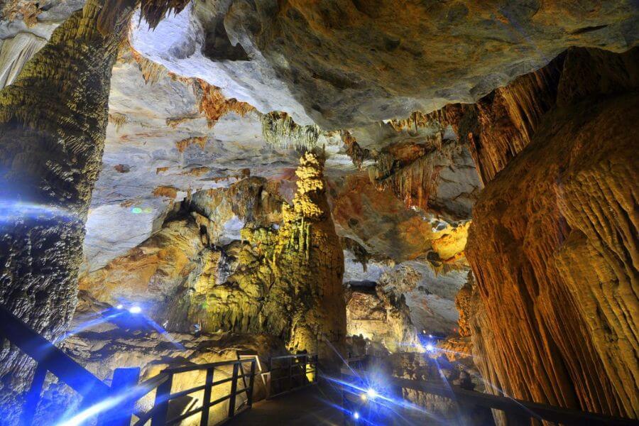 Visitors exploring the cave’s vast chambers will be captivated by nature’s otherworldly creations. Moreover, the vibrant lighting accentuates its natural beauty, making it a highlight of any adventure in Vietnam.