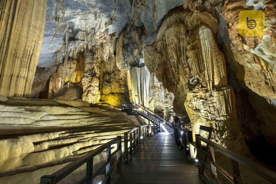 Around 9:00 am, we will travel to Thien Duong Cave by private car. You will also have about an hour to explore the world within this stunning cave. Paradise Cave is the longest dry cave in Asia, with a maximum length of 31.4 kilometers, a width ranging from 30 to 100 meters, and a height of 60 to 80 meters. Interestingly, the entrance is large enough only for a single person to descend.