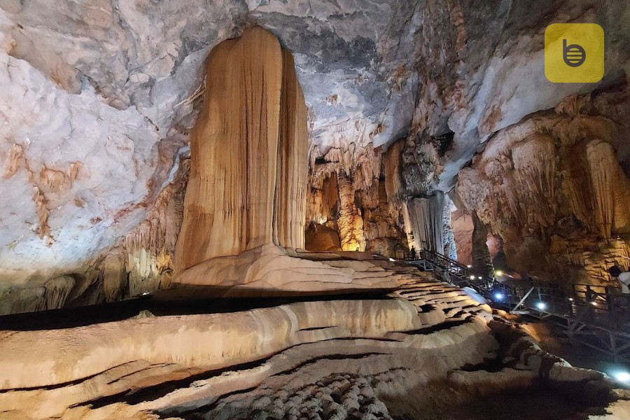 Deep within Phong Nha Cave are numerous enormous stalactites with unique formations. Additionally, the presence of underground rivers and lakes creates a cool and comfortable environment for exploration. Visitors have about an hour to visit and walk inside this cave.